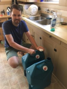- It would be best to get water containers that fit into the kitchen sink so you can pour it directly from the tap into the container. Mine were too large, so we had to sanitize a pitcher, then pour it into the container. Also, I didn’t realize how heavy they would be once filled – I could barely carry them. Water is 8 lbs a gallon, so you know, you do the math.