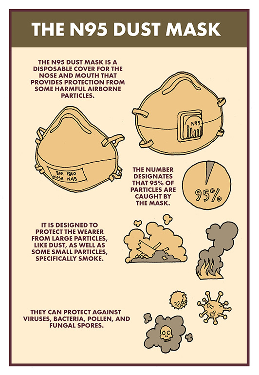 Illustration featuring N95 masks by Hugh Newell.