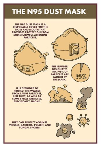 Disposable N95 masks are designed to filter out ≥95% of airborne particles ≥0.3 microns in size. This makes them effective against:
